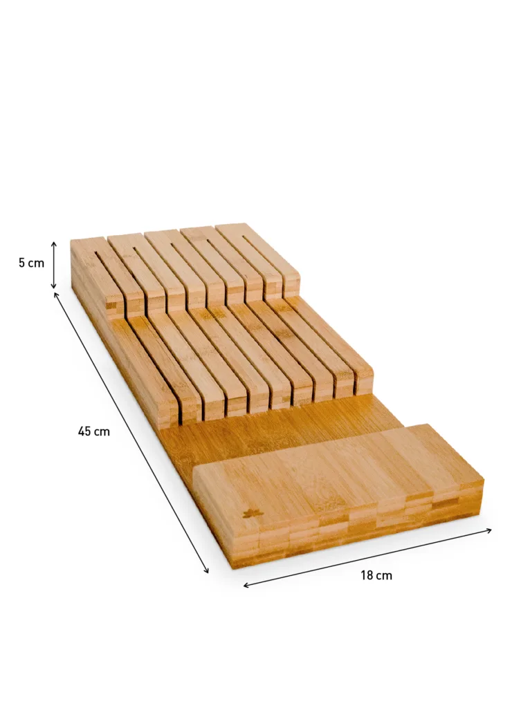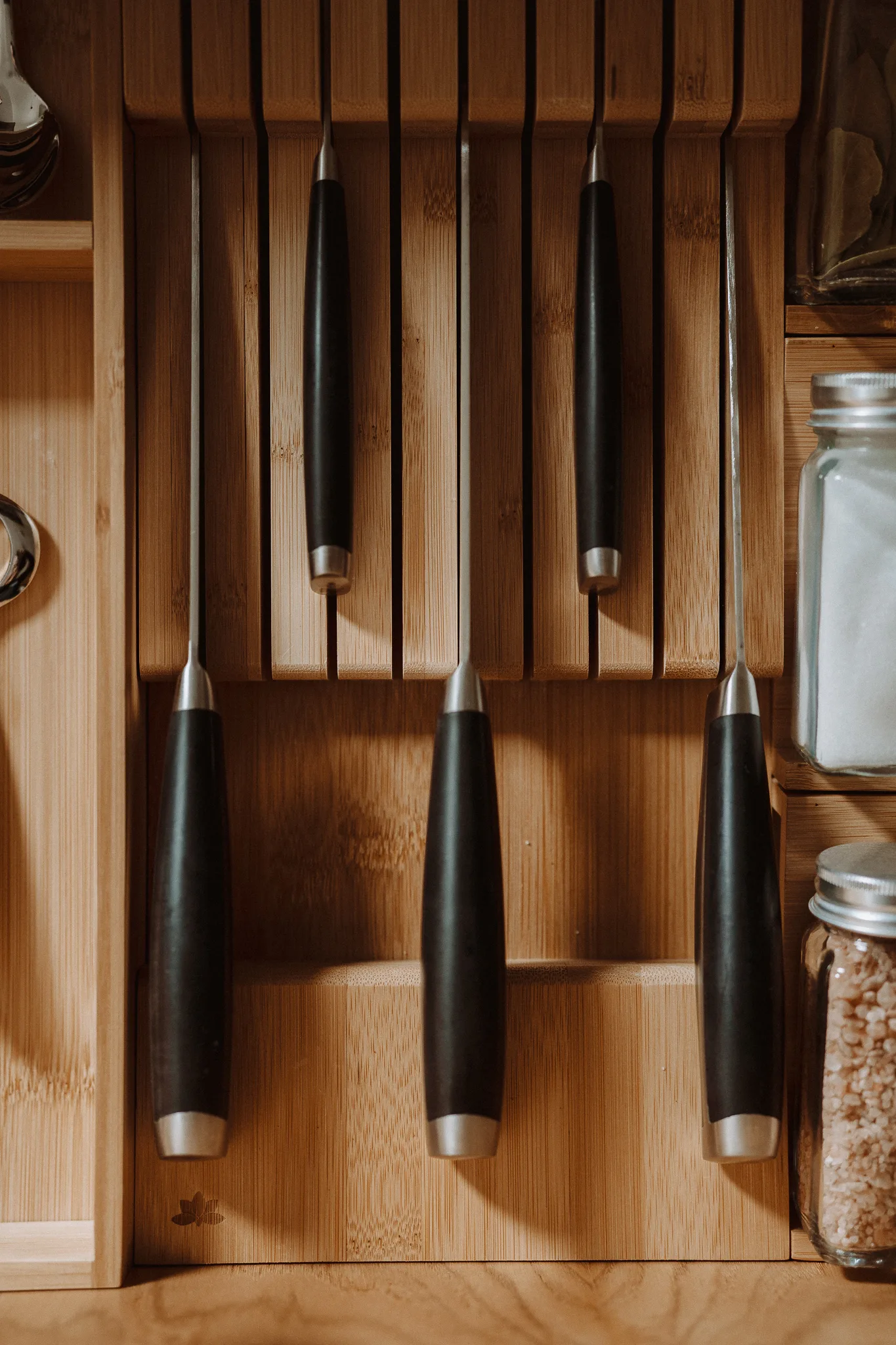 Szukasz prostego sposobu na ład i wygodę w kuchni? Ten elegancki, bambusowy organizer do szuflady uporządkuje Twoje noże, zabezpieczy ostrza i sprawi, że każdy nóż będzie na wyciągnięcie ręki. Wygląda świetnie, działa jeszcze lepiej – zwłaszcza gdy gotujesz w pośpiechu.