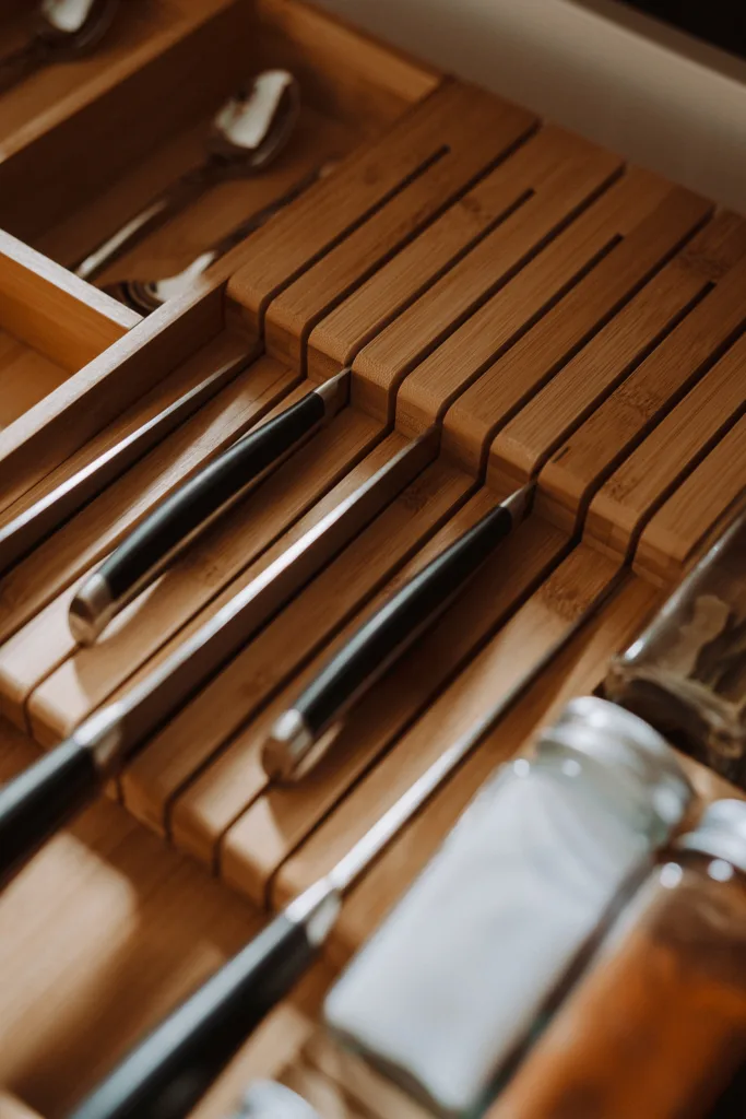 Veliatte® – porządek, bezpieczeństwo i styl w jednej szufladzie. Zadbaj o noże i wygodę pracy w kuchni – postaw na bambusowy wkład, który wygląda dobrze i działa jeszcze lepiej.