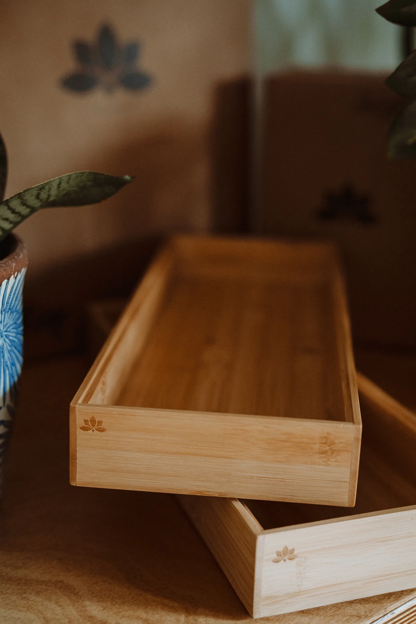 Prostokątna tacka (38,1×15,2×5,0 cm) z naturalnego drewna bambusowego to estetyczny organizer do kuchni, łazienki i biura. Dzięki modułowemu formatowi ułożysz kilka tacek obok siebie lub jedna na drugiej i szybko zorganizujesz drobiazgi.